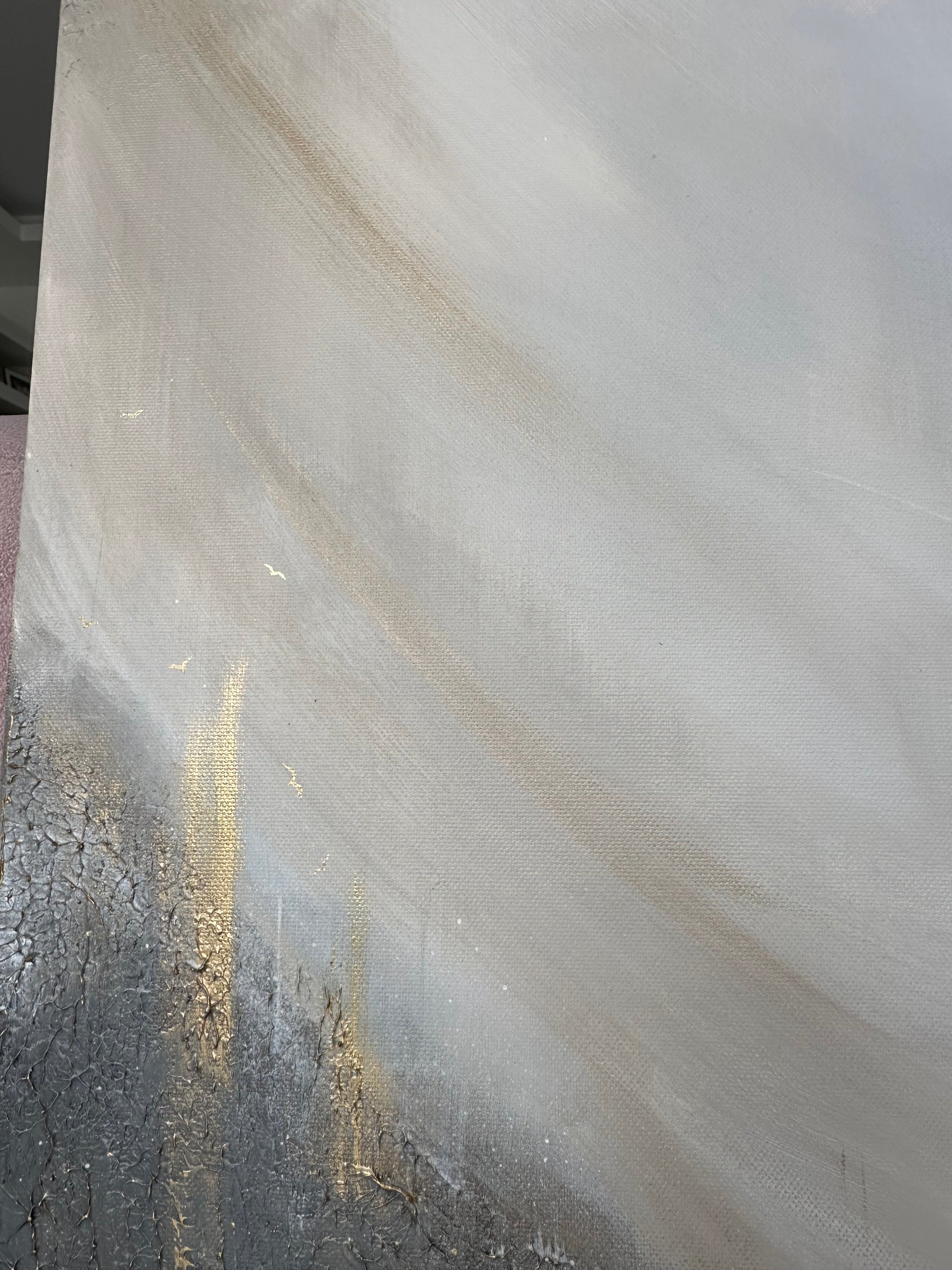 Deep Whispers is painted in warm browns, soft beiges, gentle greys and touches of deep gold. The surface is rich with texture, giving it depth and movement.